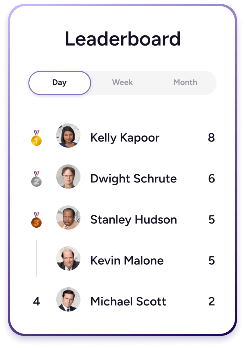 - Leaderboards to drive competition